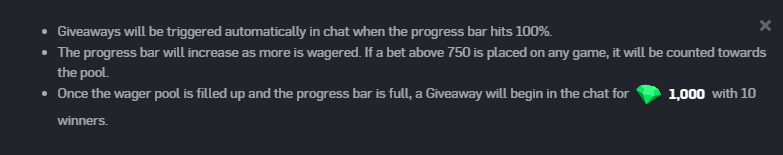 As higher individual games are placed, the progress bar will slowly fill. When the bar is full, it will trigger the next drop of Gems in the chat for 10 lucky users to benefit from!