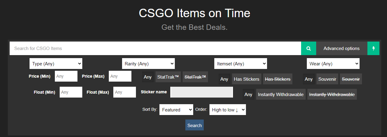 - Improved filters for item selection, such as; Type, Exterior, Stickers, and Mark-up %;