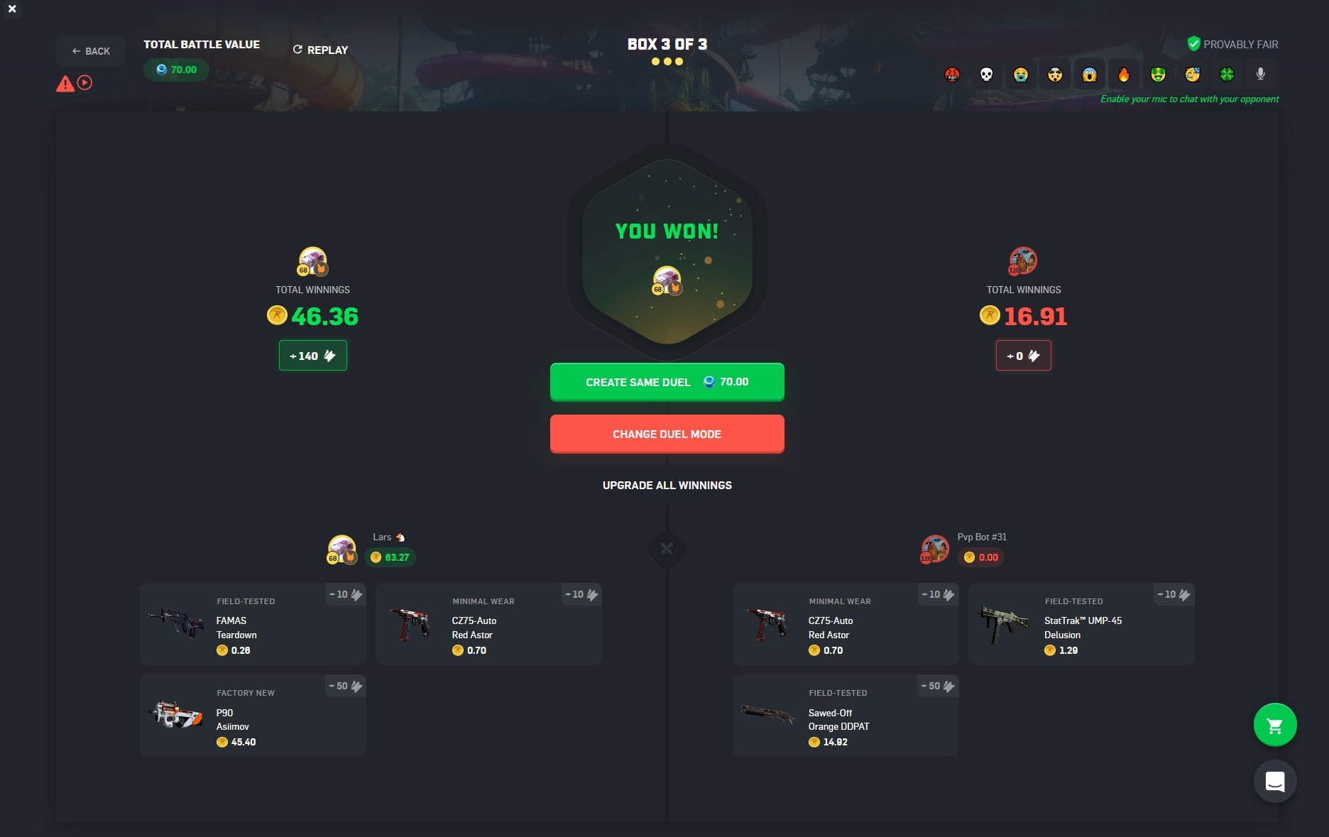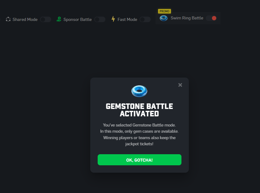 It's super simple! Visit the 'PVP' tab on CSGORoll, tap 'Case Battle' and click the 'Swim Ring Battle' toggle. Use your swim rings to create the battle, and select the gem cases that you want to compete with. You can choose to wait for another player, or battle against the PVP Bot. As always, the winner takes all.