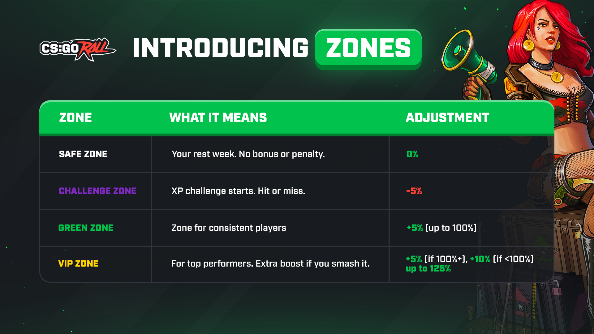 We’re introducing Zones, a new system where your XP targets are personalised based on your activity. It's our way of making sure active players get the best rewards, while still being fair to everyone.
