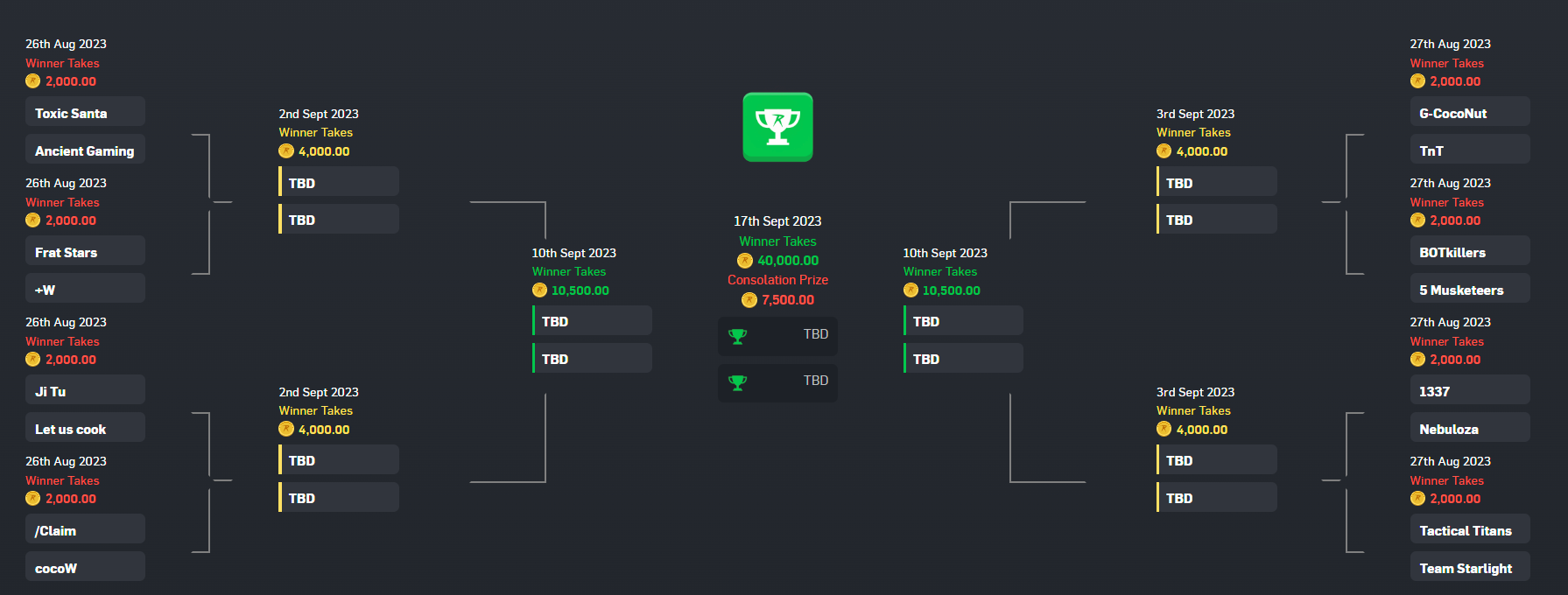 - Week 1: 75k - Aug 27th at 7 pm CET