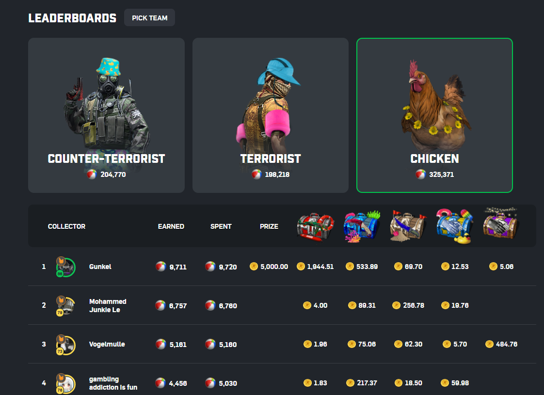 You know how it goes, once again the team Chicken guaranteeing the first prize for the team! A reminder that the MVP of each team guarantees a nice 5000 coins prize each.