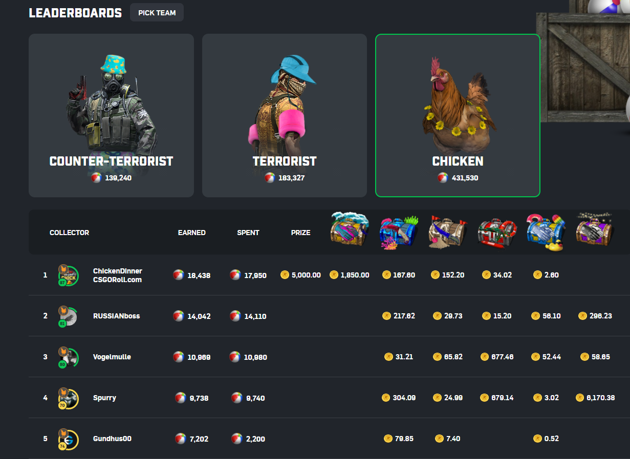 You know how it goes, once again the team Chicken guaranteeing the first prize for the team! A reminder that the MVP of each team guarantees a nice 5000 coins prize each.