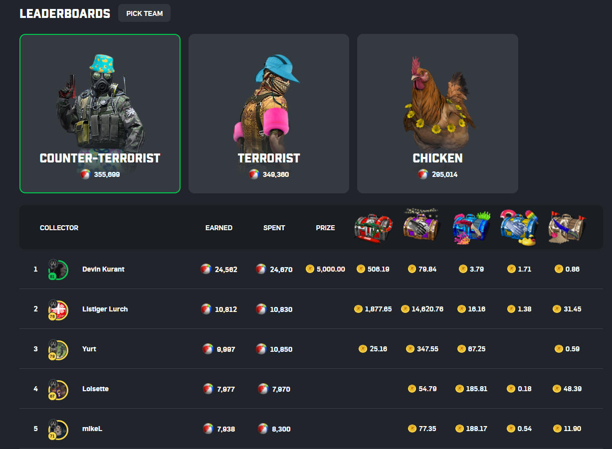 The team Counter-Terrorist came in hot to guarantee the top prize. Collecting a total of 355,699 beach balls they guaranteed the chance to compete for the best prize of this jackpot and a nice 5000 coins bonus to the MVP that collected 24,562 tickets alone, Devin Kurant.