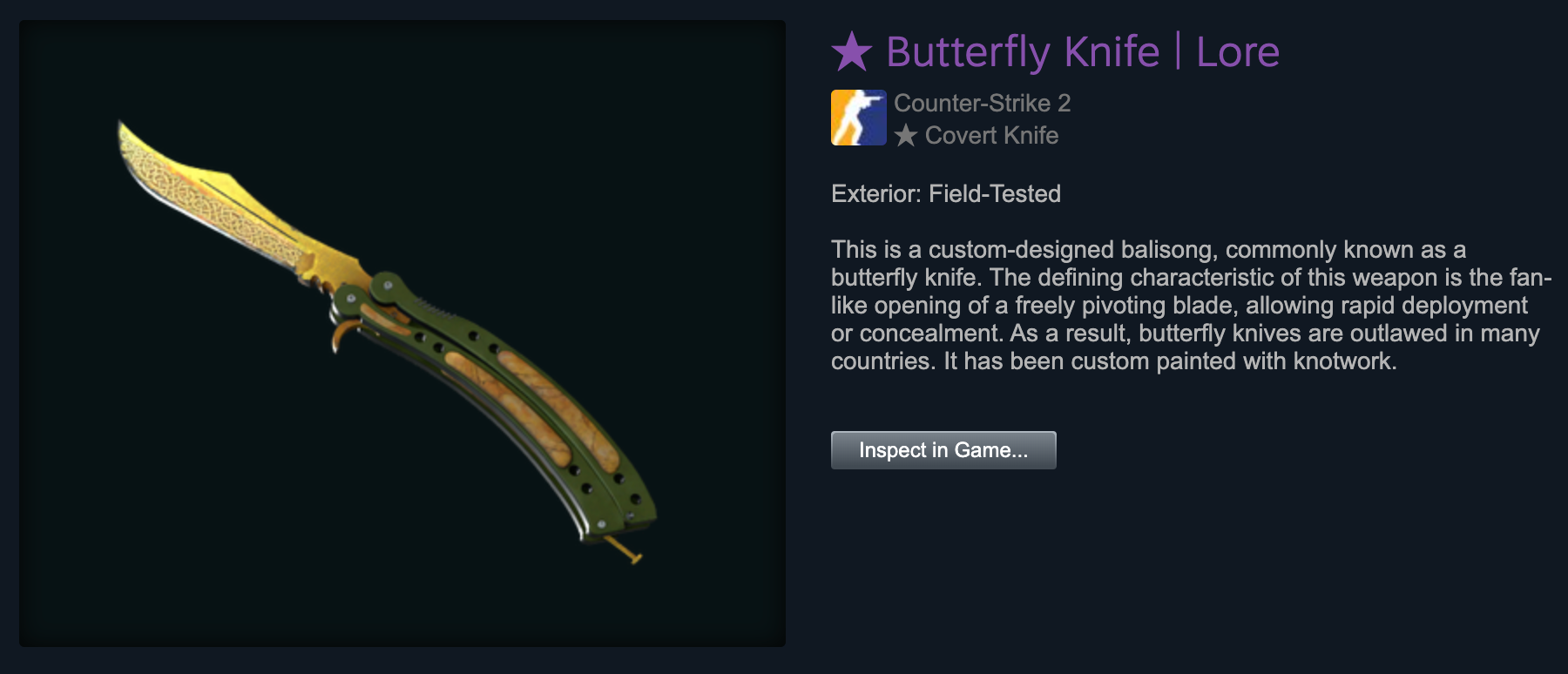Some of the rarest CS:GO skins have the covert grade, including the AK-47 Gold Arabesque and the AWP Desert Hydra. They’re difficult to obtain from a weapon case, so they’re primarily acquired through CS:GO skin trading. Although varied in value, many of them hit the high-end mark.