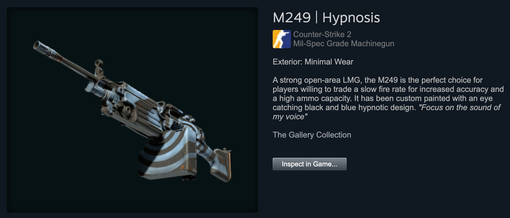 Short for military specifications, mil-spec skins are the lowest possible rarity that you can obtain from opening weapon cases. They can also be obtained after a match, but this is an extremely rare occurrence in CS:GO. They’re not really flashy, but they are a step up from industrial grade, especially value-wise.