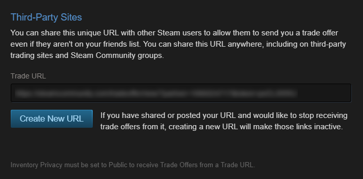 - Create a new trade URL: