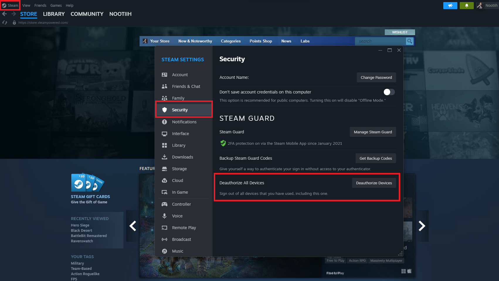 Deauthorizing all other devices will allow better protection for your Steam account after an API Attack. Here are the steps to follow on the Steam client or directly from their website: