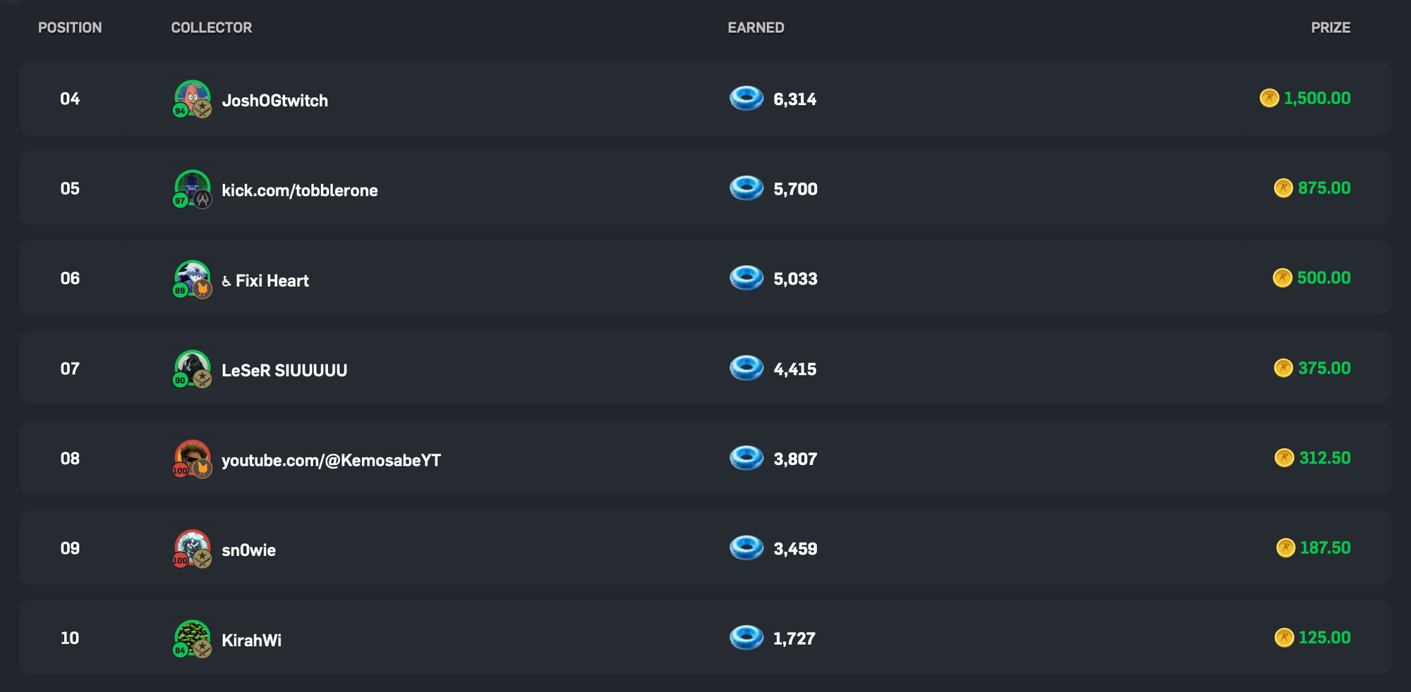 Alongside Csgorollwins, Stinker and MAKKI'999, 7 other CSGORoll players placed on our leaderboard. In fourth place, JoshOGtwitch collected 6,314 swim rings to win 1,500 coins, in fifth place Tobblerone collected 5,700 swim rings to win 875 coins and in sixth place Fixi Heart collected 5,033 swim rings to win 500 coins. Well done to everyone who competed!